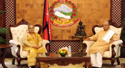काठमाडाैँ । प्रधानमन्त्री सुशीला कार्की र पूर्वराष्ट्रपति डा.रामवरण यादवबिच बुधबार शिष्टाचार भेटवार्ता भएको छ । प्रधानमन्त्री निवास बालुवाटारमा भएको भेटमा