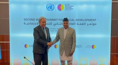 काठमाडौँ, १८ कात्तिक ‘सामाजिक विकासका लागि दोस्रो विश्व शिखर सम्मेलन’मा सहभागी हुने सिलसिलामा कतारको राजधानी दोहामा रहनुभएका राष्ट्रपति रामचन्द्र पौडेलसँग