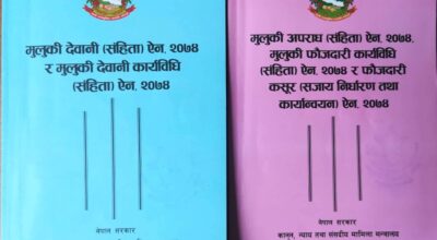 काठमाडौँ : ‘मुलुकी अपराध संहिता, २०७४ लाई संशोधन गर्न बनेको विधेयक’लाई सरोकार भएका निकाय र व्यक्तिबीच छलफलमार्फत सहमति गरेर मात्र
