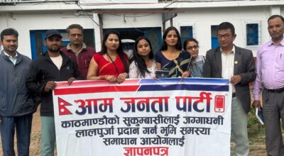 काठमाडौं । आम जनता पार्टी (आजपा)ले काठमाडौंको विभिन्न क्षेत्रमा बसोबास गर्दै आएका सुकुम्वासीहरुलाई जग्गाधनी लालपुर्जा दिन माग गर्दै भूमी समस्या