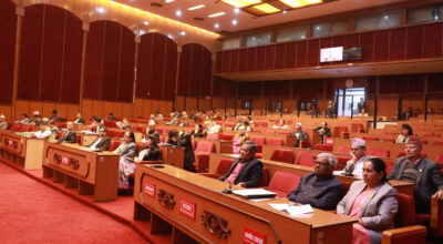 काठमाडौँ : राष्ट्रियसभाको आजको बैठकमा सांसद मदनकुमारी शाह (गरिमा)ले ‘मर्यादित महिनावारीका लागि महिनावारी विभेद अन्त्यसम्बन्धी’ सङ्कल्प प्रस्ताव प्रस्तुत गर्नुभएको छ ।