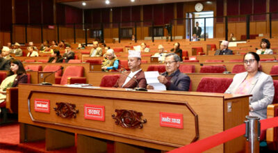 काठमाडौँ । राष्ट्रिय सभाको बैठक बस्दैछ । बिहान सवा ११ बजे बस्ने बैठकमा यसअघिको बैठकमा अड्किएका विधेयक अघि बढाउँदैछ ।