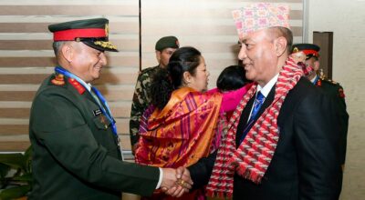 कैलाली : सुदूरपश्चिम प्रदेशका मुख्यमन्त्री कमलबहादुर शाह र नेपाली सेनाका प्रधान सेनापति महारथी अशोकराज सिग्देलबीच आज धनगढीमा भेटवार्ता भएको छ