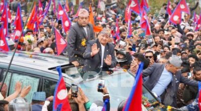 काठमाडौं : पूर्वराजा ज्ञानेन्द्र शाह काठमाडौं आइपुगेका छन्। पोखराबाट चार्टर जहाजमार्फत आएका पूर्वराजा ज्ञानेन्द्रको काठमाडौंमा भव्य स्वागत गरिएको छ। पूर्वराजा
