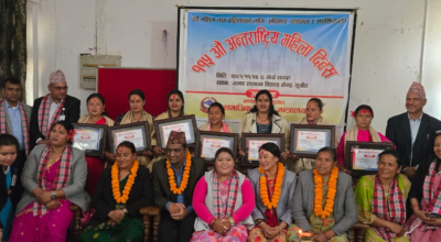 सुर्खेत । कर्णाली प्रदेश सरकारले ११५ औँ अन्तर्राष्ट्रिय महिला दिवसको अवसरमा ८ जना महिला उद्यमीहरूलाई पुरस्कृत गरेको छ । उनीहरूलाई सम्मान