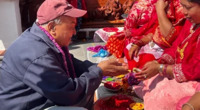 कात्तिक ६ गते । नेकपा (एमाले) का अध्यक्ष तथा पूर्व प्रधानमन्त्री केपी शर्मा ओलीले बहिनीहरूको हातबाट शुभ साइतमा २०८२ सालको तिहारको