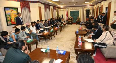 काठमाडौं । मन्त्रिपरिषद् बैठक सुरु भएको छ । प्रधानमन्त्री तथा मन्त्रिपरिषद् कार्यालयमा केहीबेरबाट बैठक चलिरहेको हो । यो नियमित बैठक
