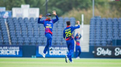 काठमाडौँ – स्कटल्याण्डमा जारी त्रिकोणात्मक टी२० सिरिजअन्तर्गत भइरहेको तेस्रो खेलमा नेपालले घरेलु टोलीलाई दुई विकेटले हराएको छ । दुबै इनिङमा दुबै
