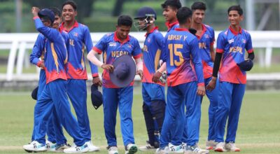 काठमाडौँ, ८ असार । एसिसी पुरुष यु–१६ पूर्वी क्षेत्रीय क्रिकेट प्रतियोगितामा नेपालले सिङ्गापुरलाई पराजित गर्दै प्रतियोगितामा सुखद सुरुआत गरेको छ
