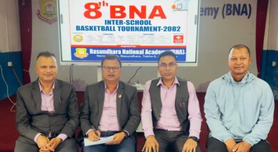 काठमाडौँ : बसुन्धरा नेसनल एकेडेमी (बिएनए) को आयोजनामा मङ्गलबारदेखि आठौँ बीएनए कप अन्तरविद्यालय बास्केटबल प्रतियोगिता हुने भएको छ । प्रतियोगिताअन्तर्गत