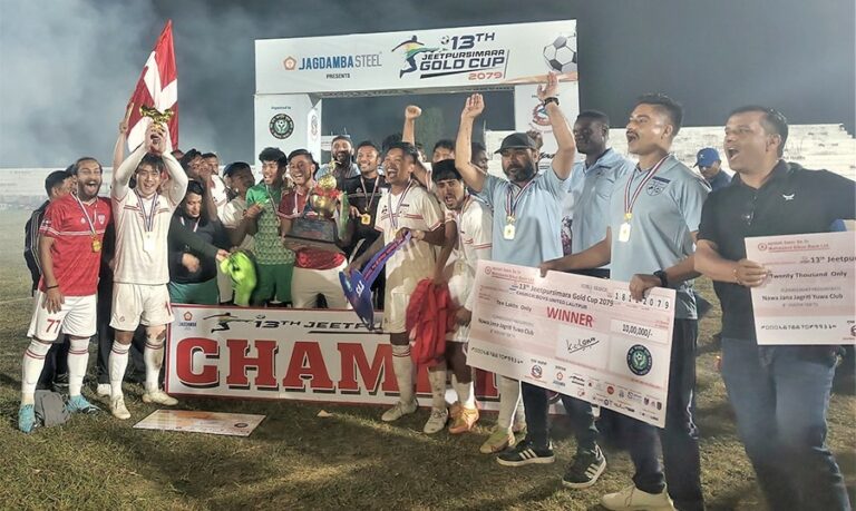 काठमाडौँ- अखिल नेपाल फुटबल सङ्घको आयोजनामा भएको प्रधानमन्त्री त्रिदेशीय फुटबल कप प्रतियोगिताको उपाधि नेपालले जितेको छ । त्रिपुरेश्वरस्थित दशरथ रङ्गशालामा आज