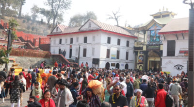 काठमाडौं । महाशिवरात्रि पर्वको दिन नजिकिएसँगै पशुपति क्षेत्रलाई साजसजावट गरेर आकर्षक बनाउन थालिएको छ । पशुपति क्षेत्रका वनकाली, भुवनेश्वरी, मुख्य
