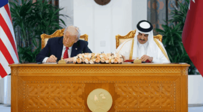दोहा । कतार भ्रमणको क्रममा अमेरिकी राष्ट्रपति डोनाल्ड ट्रम्प र कतारका अमिर शेख तामिन बिन हमद अल–थानीबिच बुधबार दोहामा १२