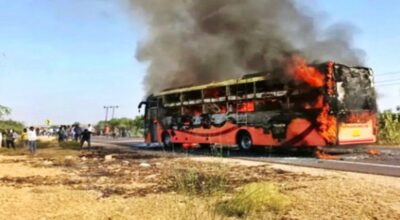 असोज २९ गते । भारतको पश्चिमी राज्य राजस्थानमा एक निजी बसमा आगलागी हुँदा मङ्गलबार कम्तीमा २० जनाको ज्यान गएको सरकारी अधिकारीले