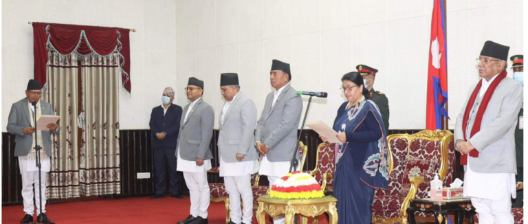 आज शीतल निवासमा आयोजित एक कार्यक्रमबीच उहाँले राष्ट्रपति विद्यादेवी भण्डारीबाट शपथ लिनुभएको हो ।
