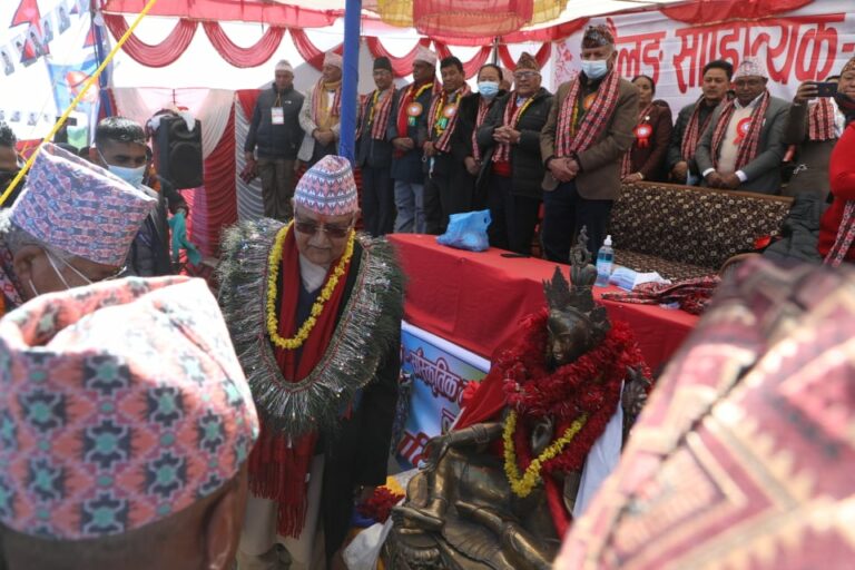 दोलखा – नेकपा एमालेका अध्यक्ष केपी शर्मा ओलीले आज शैलुङ साहित्यिक–सांस्कृतिक महोत्सवको उद्घाटन गर्नुभएको छ । मदन भण्डारी कला–साहित्य प्रतिष्ठानले दोलखास्थित शैलुङ डाँडामा आयोजना गरेको शैलुङ साहित्यिक–सांस्कृतिक महोत्सव–२०७८ को अध्यक्ष ओलीले आज उद्घाटनका गर्नुभएको हो ।