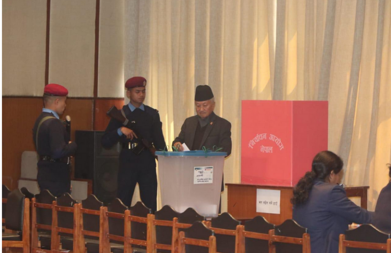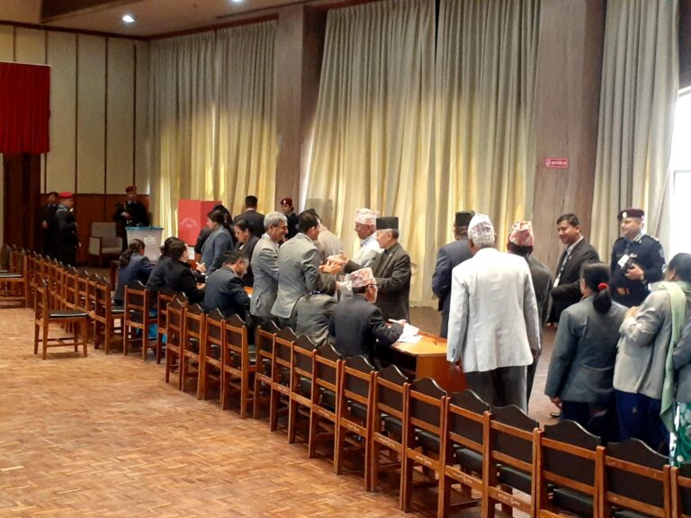 काठमाडौं । नेपालको चौथो राष्ट्रपति चयनका लागि मतदान भई रहेको छ । संसद् भवन नयाँबानेश्वरमा मतदान भइरहेको छ । मतदान दिँउसो ३ बजेसम्म हुन्छ ।