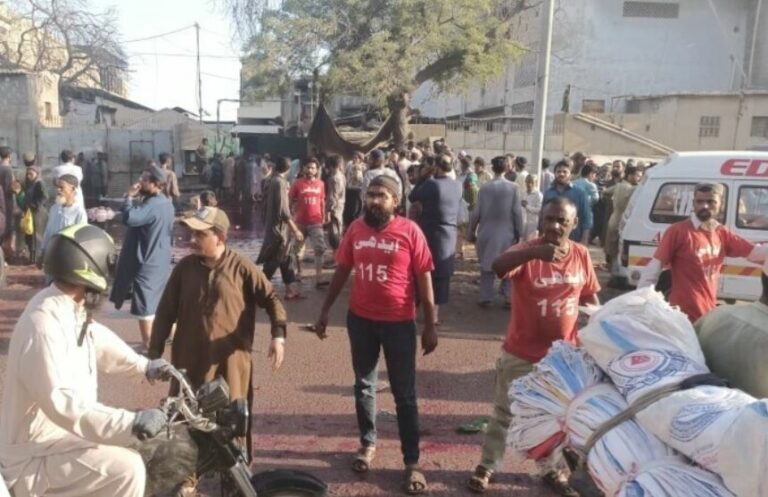 घटना कराँचीस्थित एक कारखाना परिसरमा भएको हो। रमजानमा खाद्यान्नलगायत अन्य सामग्री वितरण गरिरहेको स्थानमा भागदौड मच्चिएको हो।