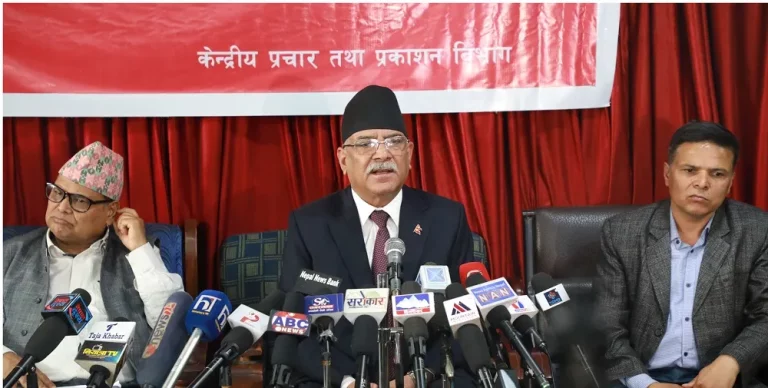 काठमाडौँ – माओवादी केन्द्र अध्यक्ष पुष्पकमल दाहाल प्रचण्डले गठबन्धनभित्र भागबन्डामा सहमति नजुटे आफ्नो पार्टी एक्लै चुनावमा प्रतिस्पर्धा गर्ने चेतावनी दिनु भएको छ ।